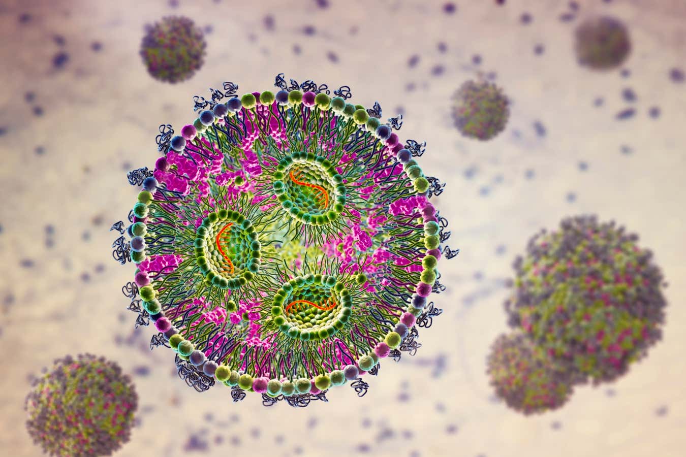 Illustration of a lipid nanoparticle created to deliver mRNA into the body
